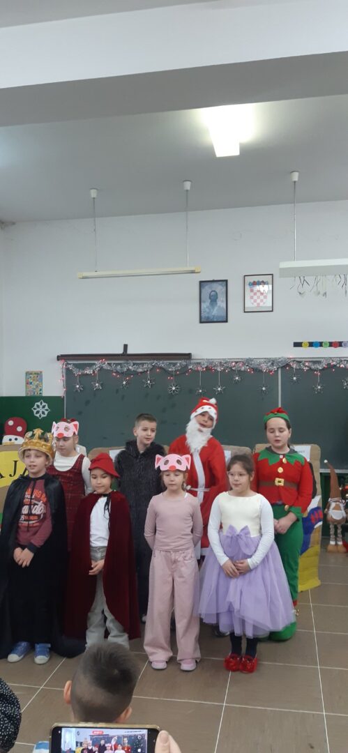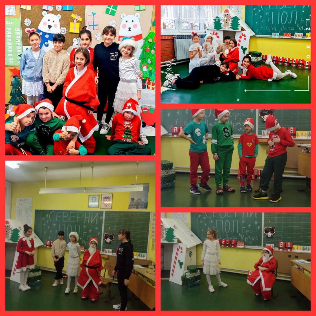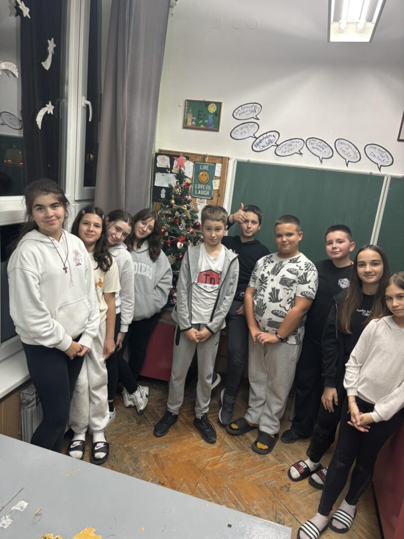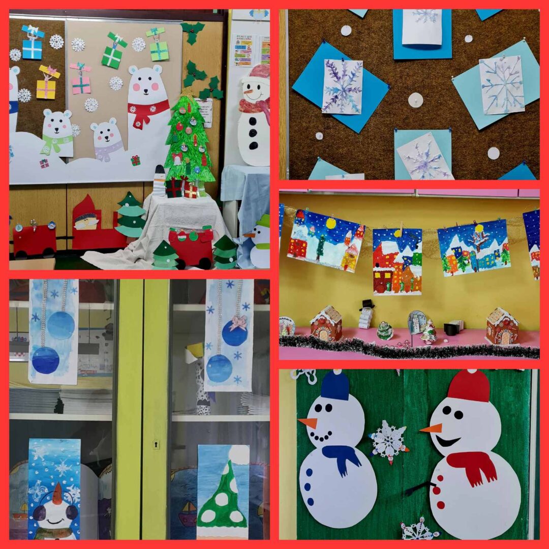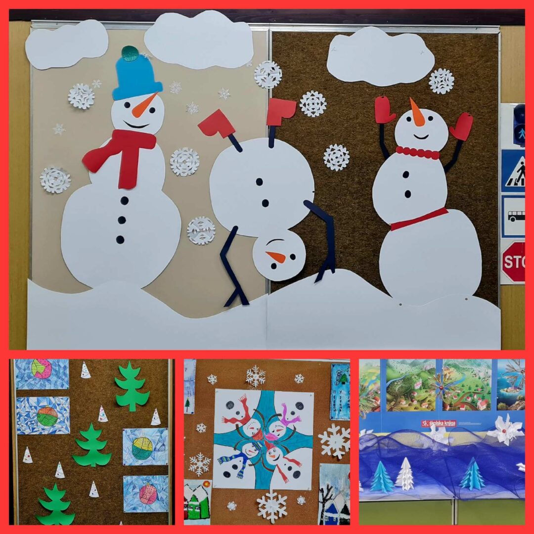 Nova godina i Božić polako nam se bliže, a kako su sve bliže tako osjetimo i sve više čarolije u zraku. Na Sekciji English+ odlučili smo se ‘posuti’ malo te čarolije po hodnicima škole i vrijednim radom ukrasili božićno drvce i dva panoa sa zimskom temom. Na prvom panou koji je zapravo izložba sekcije napisali smo zanimljive šale-pitalice, odnosno X-mas Jokes, koje su također u temi s našim drugim panoom gdje imamo jednog prijateljskog snjegovića i djeda mraza sa puno pahulja baš onako s prazničnim vibrama. Osim panoa, tko bi mogao zamisliti praznike bez jedne jelke? Pa smo posudili jednu malu, ali slatku jelku i dodali joj mnoštvo lijepih ukrasa i šarenih lampica koja nam je ukrasila učionicu. Treba još istaknuti da smo sve ovo, s puno truda i zajedničkim snagama, napravili u samo dva školska sata.
