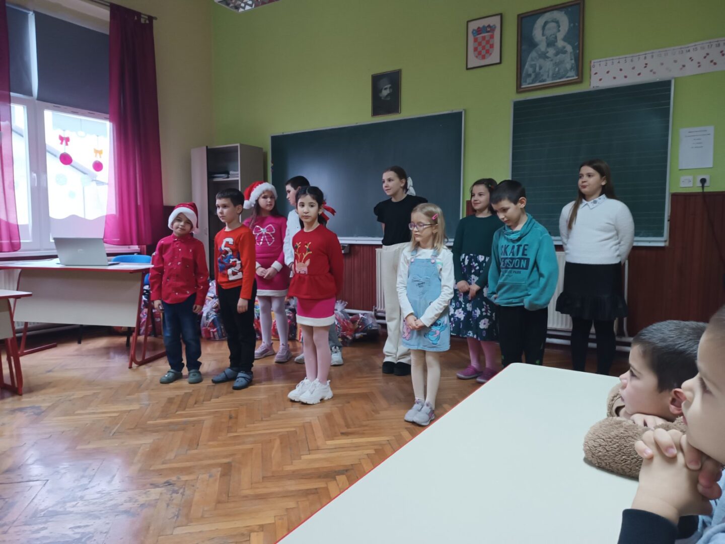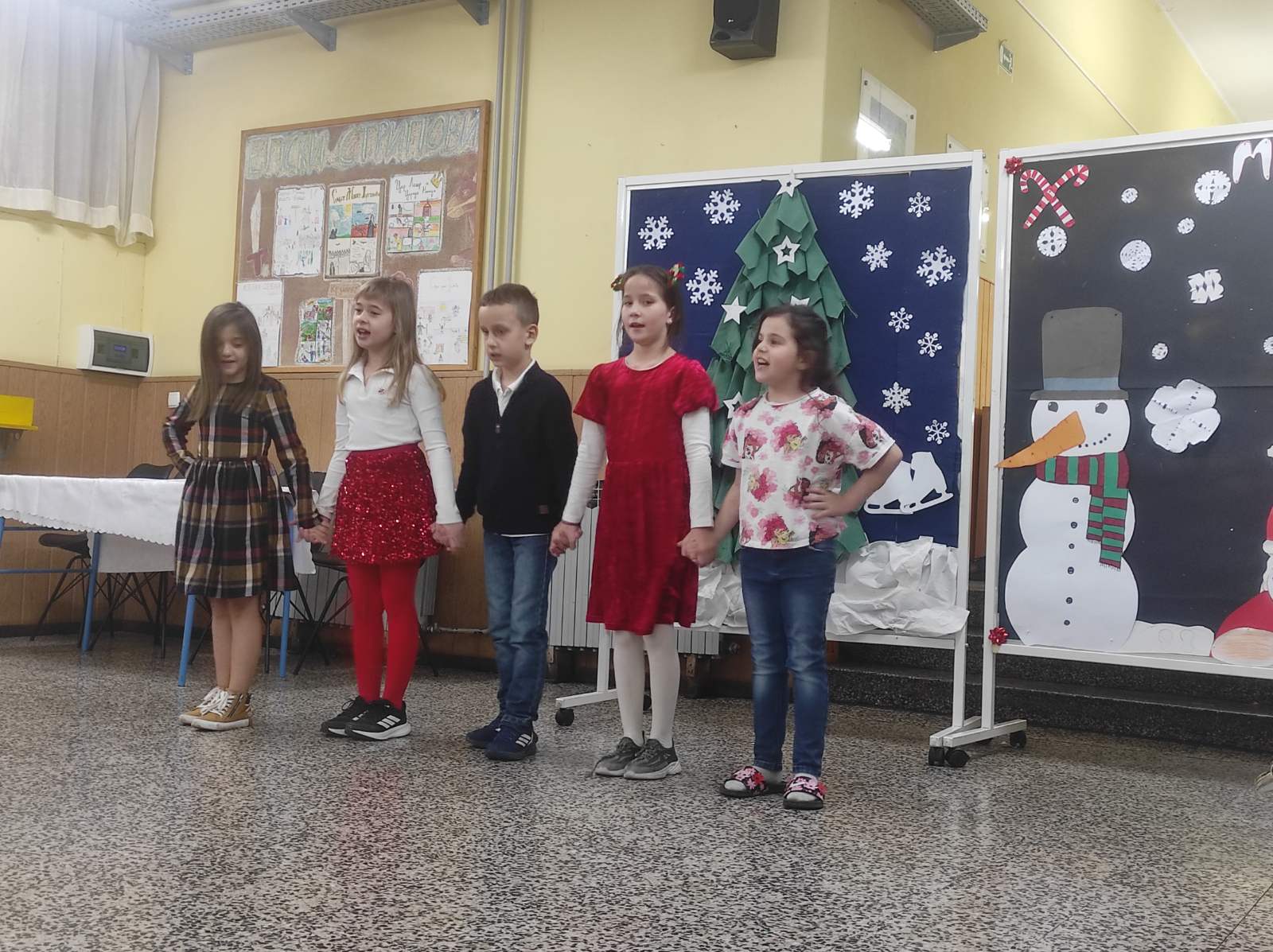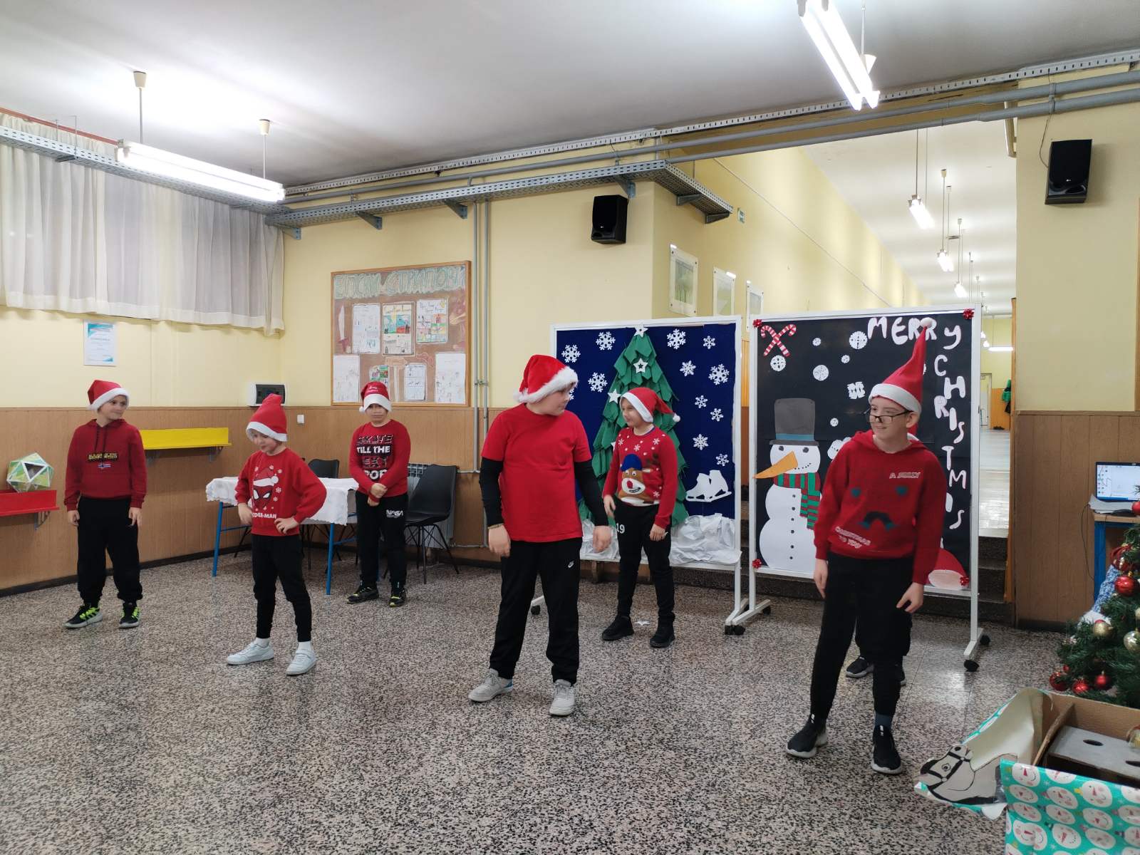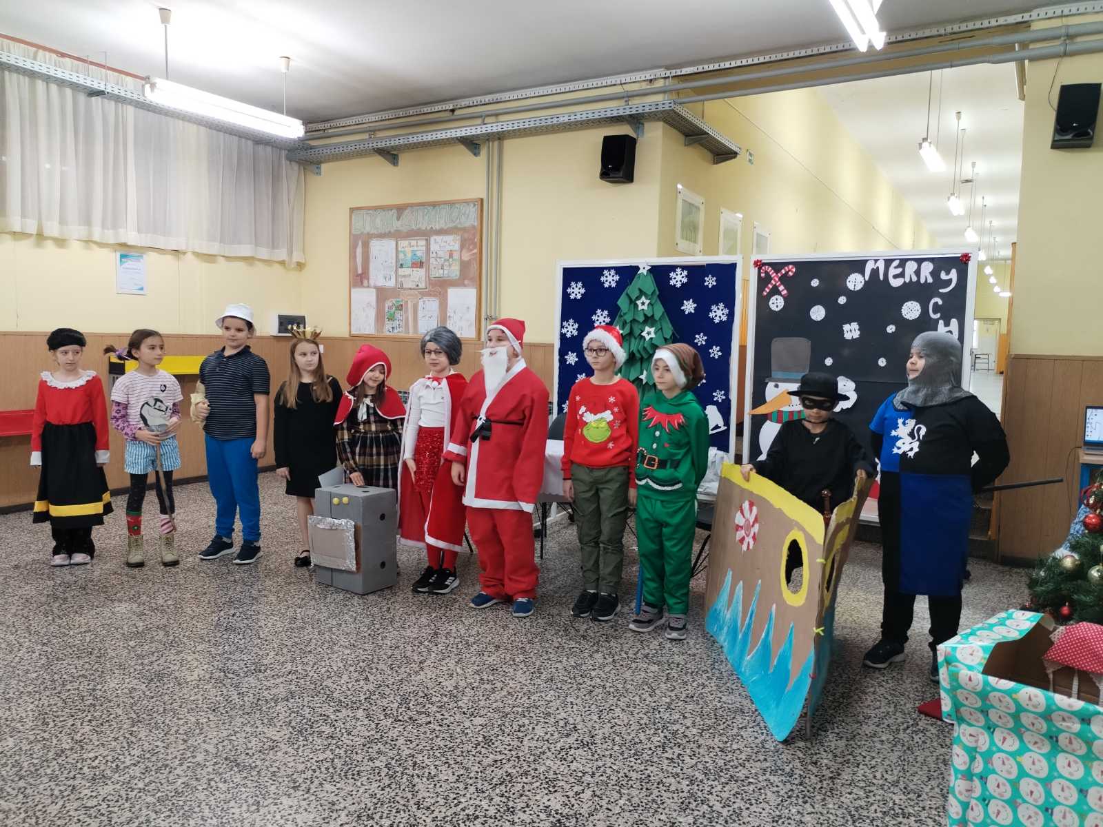 Nova godina i Božić polako nam se bliže, a kako su sve bliže tako osjetimo i sve više čarolije u zraku. Na Sekciji English+ odlučili smo se ‘posuti’ malo te čarolije po hodnicima škole i vrijednim radom ukrasili božićno drvce i dva panoa sa zimskom temom. Na prvom panou koji je zapravo izložba sekcije napisali smo zanimljive šale-pitalice, odnosno X-mas Jokes, koje su također u temi s našim drugim panoom gdje imamo jednog prijateljskog snjegovića i djeda mraza sa puno pahulja baš onako s prazničnim vibrama. Osim panoa, tko bi mogao zamisliti praznike bez jedne jelke? Pa smo posudili jednu malu, ali slatku jelku i dodali joj mnoštvo lijepih ukrasa i šarenih lampica koja nam je ukrasila učionicu. Treba još istaknuti da smo sve ovo, s puno truda i zajedničkim snagama, napravili u samo dva školska sata.