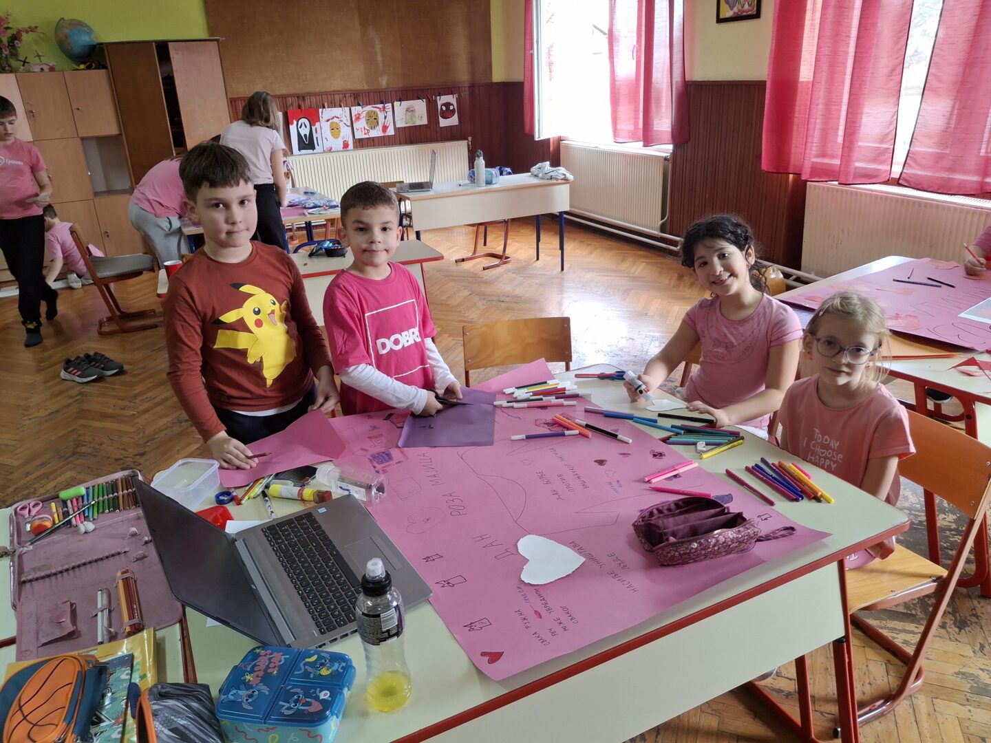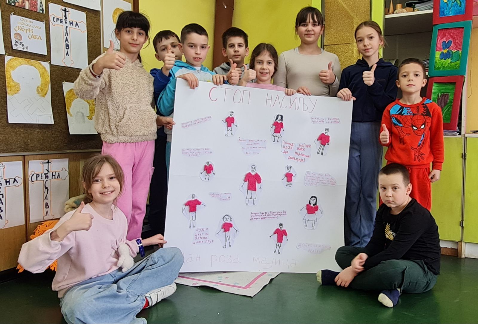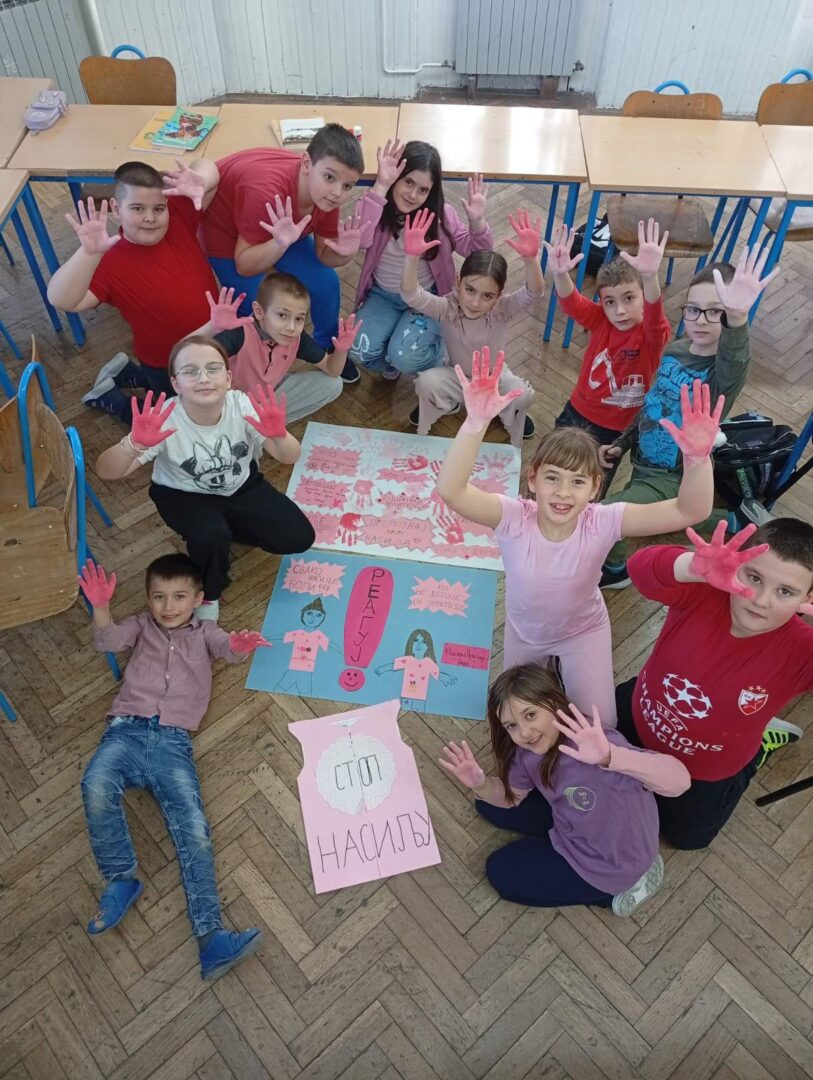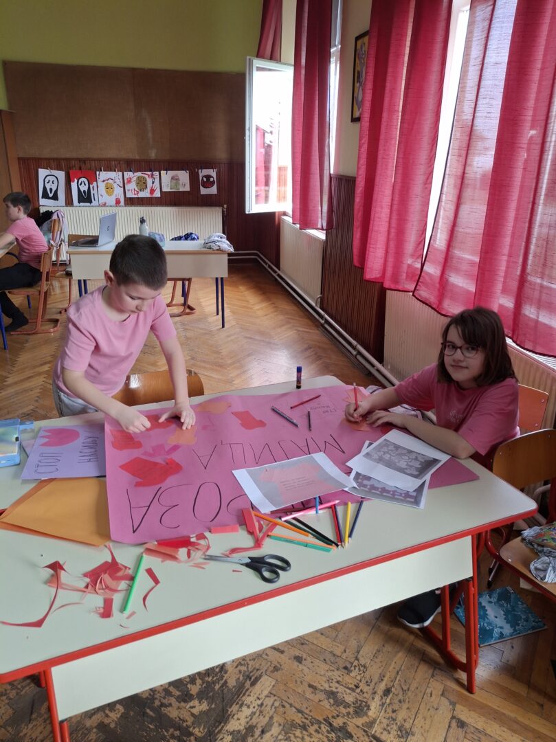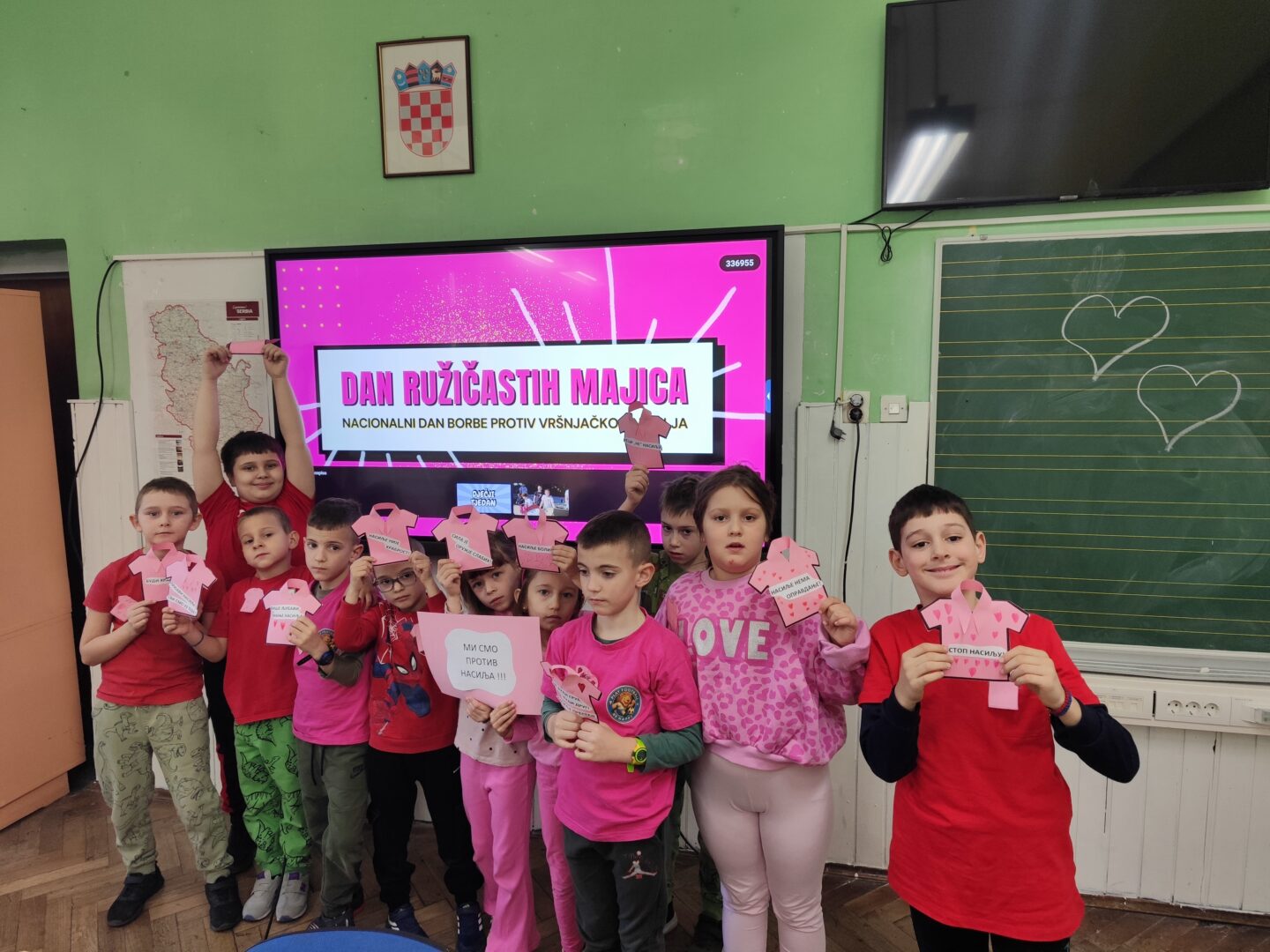 Последње среде у фебруару у нашој школи се обележава Дан ружичастих мајица. Овај дан смо обележили на часовима разредног старешине. Том приликом смо се подсетили зашто се овај дан обележава и која је његова порука, те смо израдили пригодне плакате и поруке којима смо једногласно поручили; „НЕ вршњачком насиљу!!!“