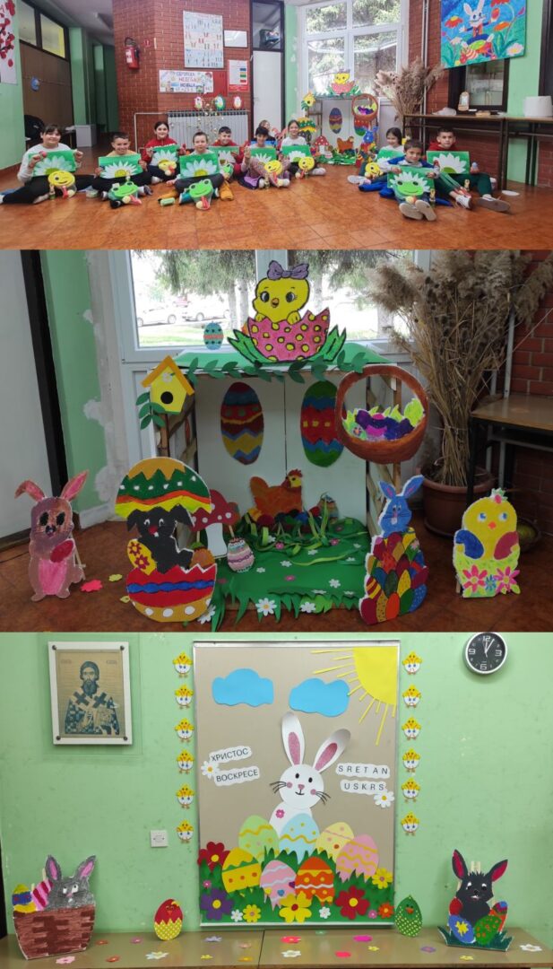 Време васкршњих празника резервисано је за организовање радионица. Наши ученици су са својим учитељицама били вредни и креативни те су израдили ускрасе којима су украсили своје школе. Шта су све израдили можете погледати на приложеним сликама.