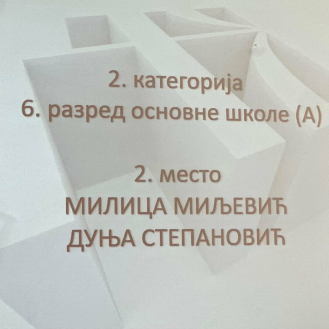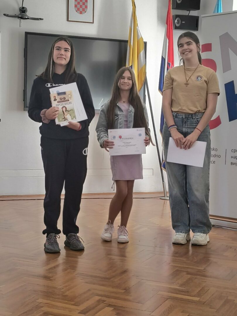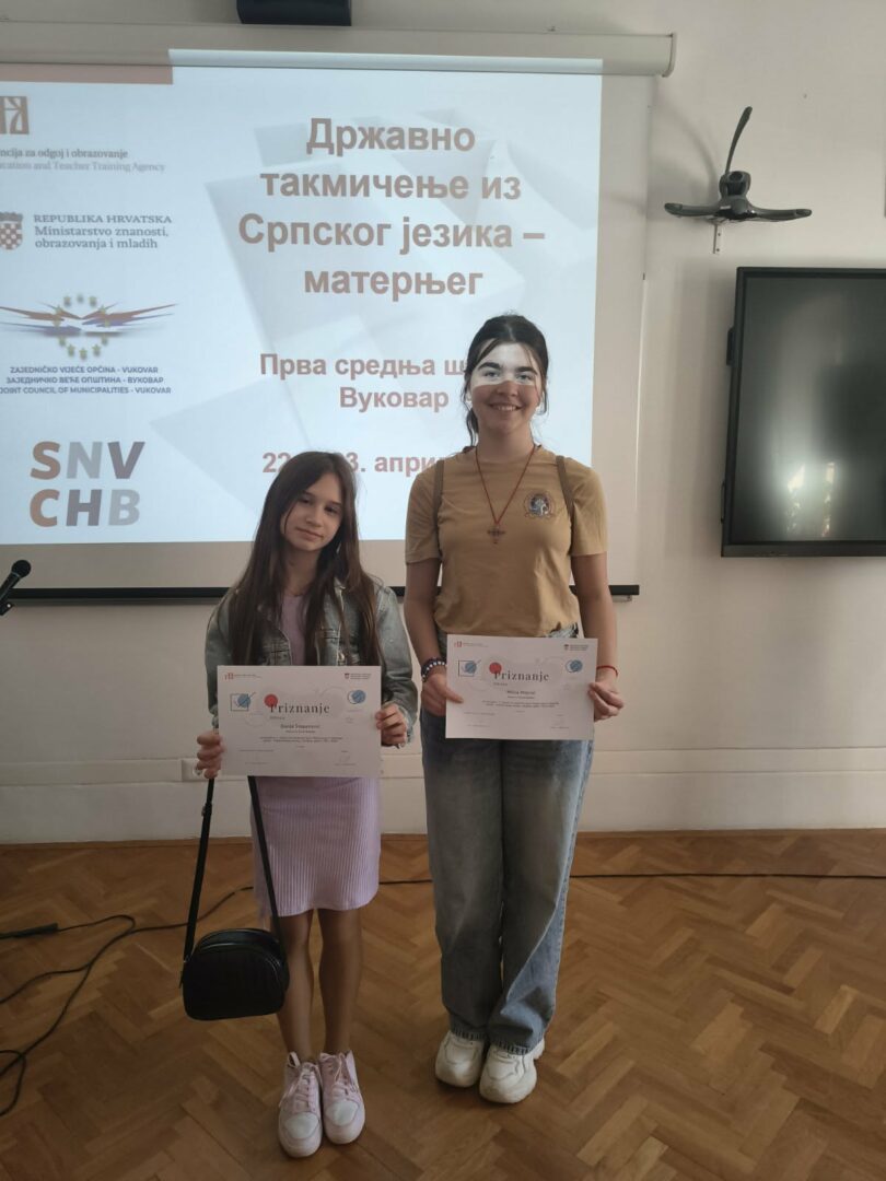 Ove godine prvi put je održano Državno natjecanje iz srpskog jezika za učenike koji pohađaju nastavu po modelu A i C u Republici Hrvatskoj, u organizaciji Agencije za odgoj i obrazovanje. Naša škola imala je četiri predstavnika na ovom natjecanju. Natjecanje je održano u Vukovaru u Prvoj srednjoj školi Vukovar, 23. travnja 2026. godine. Učenice naše škole postigle su zapažene rezultate. Učenica Jelena Alavanja iz PŠ Pačetin, uz mentorstvo učiteljice LJiljane Ćosić, osvojila je 3. mjesto u 1. kategoriji- 4. razred osnovne škole, dok su učenice šestog razreda Milica Miljević i Dunja Stepanović, uz mentorstvo učiteljice Sanje Stojković, podijelile 2. mjesto u 2. kategoriji- 6.razred osnovne škole. Učenica šestog razreda Sofija Maletić osvojila je 6.mjesto i zaslužuje posebnu pohvalu za svoj trud i zalaganje. Našim učenicama i njihovim mentorima zahvaljujemo se na uloženom trudu, kao i na postignutim rezultatima, na koje smo veoma ponosni.